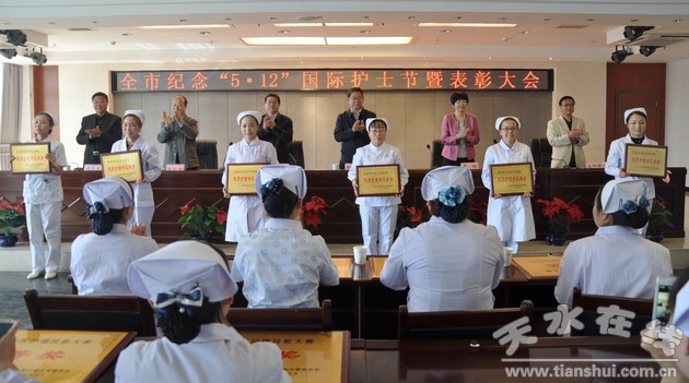 為進(jìn)一步弘揚(yáng)南丁格爾甘于奉獻(xiàn)、救死扶傷、勇于獻(xiàn)身的人道主義精神,團(tuán)結(jié)和激勵(lì)廣大護(hù)理工作者忠實(shí)履行救死扶傷、服務(wù)人民的神圣職責(zé),5月8日,天水市衛(wèi)生計(jì)生委在市中醫(yī)院住院樓16樓多功能會(huì)議室隆重舉行全市衛(wèi)生計(jì)生系統(tǒng)紀(jì)念“5·12”國(guó)際護(hù)士節(jié)暨表彰大會(huì)。市衛(wèi)生計(jì)生委領(lǐng)導(dǎo)班子成員,各縣區(qū)衛(wèi)生計(jì)生局(衛(wèi)生局)、市直各醫(yī)療機(jī)構(gòu)負(fù)責(zé)人以及來(lái)自全市臨床護(hù)理一線優(yōu)秀護(hù)士、護(hù)士長(zhǎng)代表共130余人參加會(huì)議。