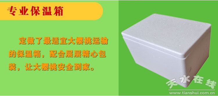為了讓買家收到的每一顆大櫻桃都是最新鮮的,天水在線網(wǎng)店與全球最具實效的順豐快遞公司合作,在包裝上采用了目前最先進最安全的包裝方式。