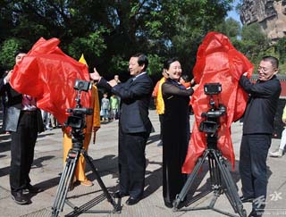 反映西北農(nóng)村題材首部時尚主旋律大型電視連續(xù)劇《苦樂村官》,近日在甘肅天水麥積山石窟主景區(qū)開機。出品方甘肅省委宣傳部、天水市委市政府、上海保奇影視文化發(fā)展股份有限公司的負責人和主演劉威、錢泳辰等出席開機儀式。在開機儀式上,著名編劇曹銳、導演白永成、藝術總監(jiān)劉威、演員代表錢泳辰分別發(fā)表感言。