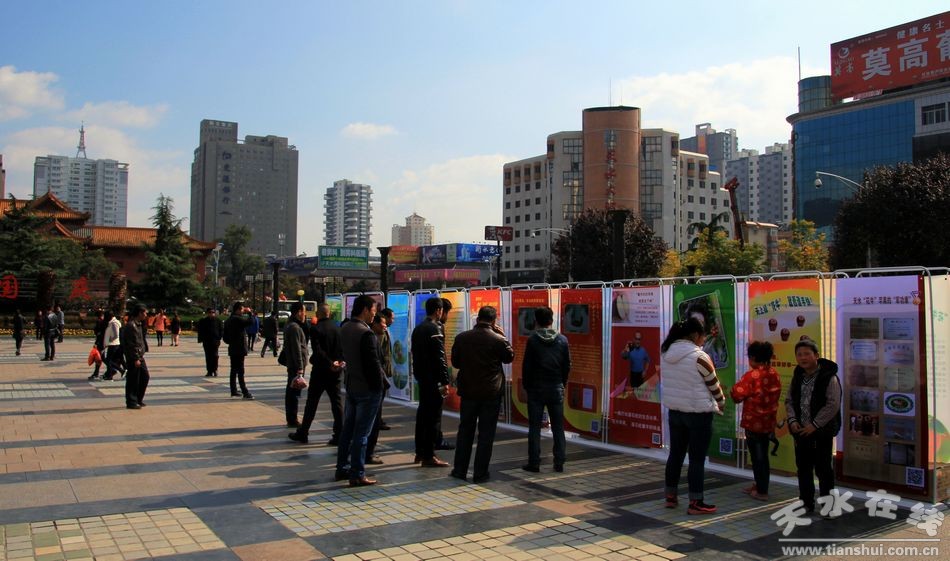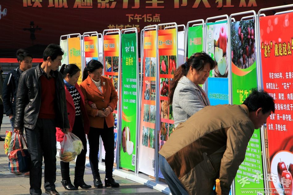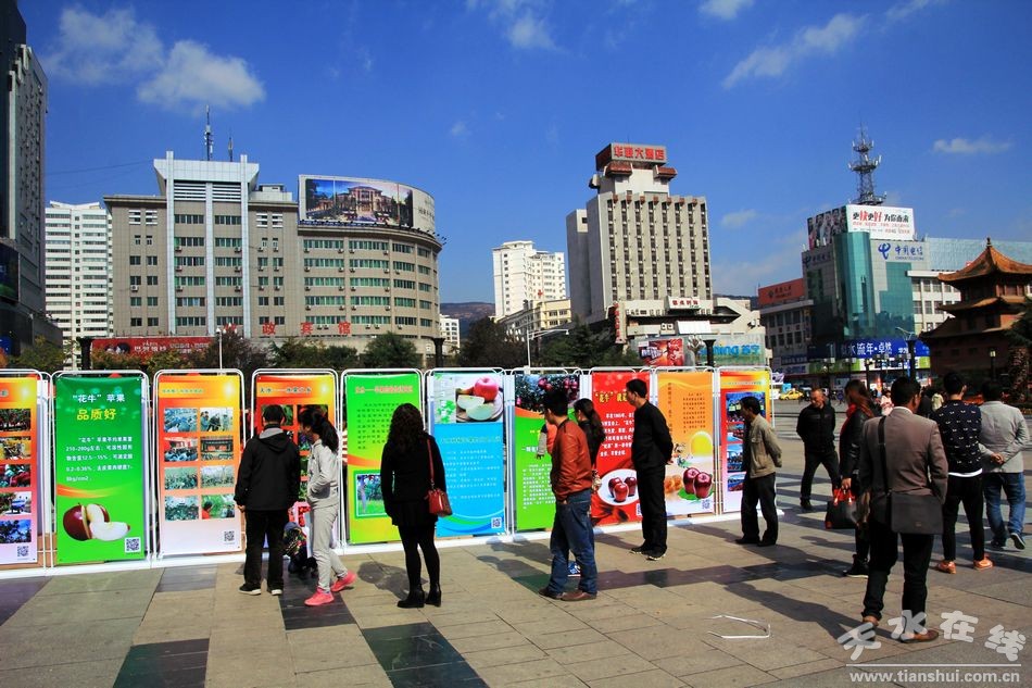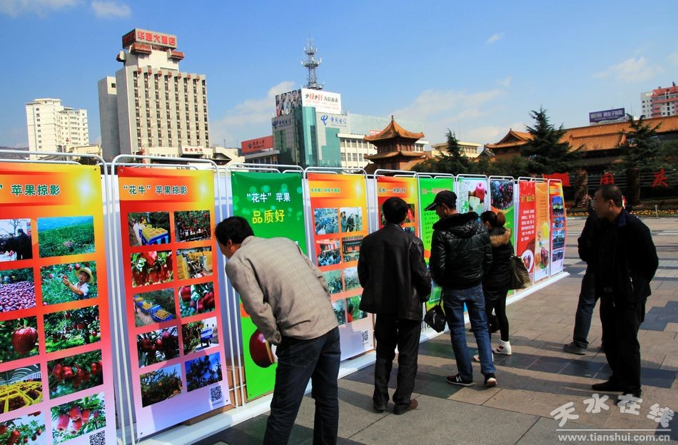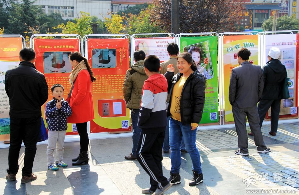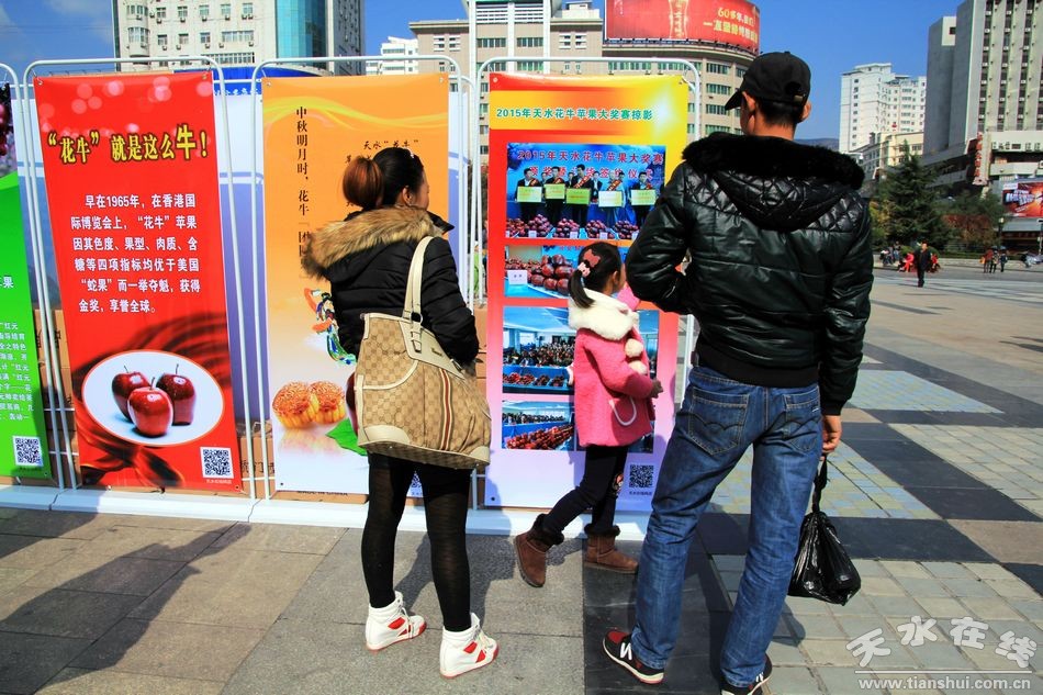 10月31日,30塊“花!碧O果宣傳展板在龍城廣場展出,吸引了眾多市民圍觀。據(jù)悉,這些宣傳展板是為10月30日上午在蘭州舉行的天水花牛蘋果及果業(yè)宣傳推介會由天水市林業(yè)局和天水在線專門設(shè)計制作的。
