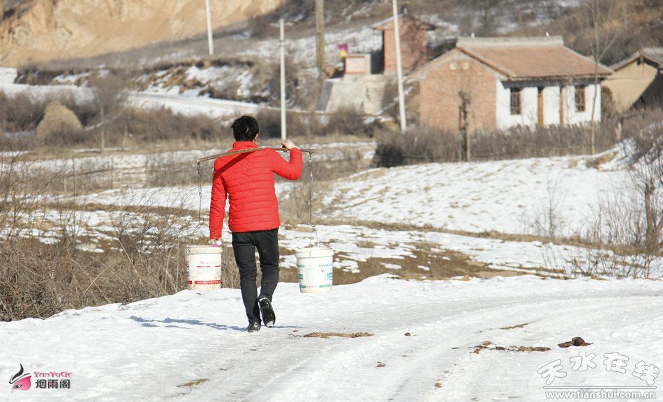 現(xiàn)在的村里,一般年輕人不多,大多為留守的老人,孩子和媳婦們,在這個(gè)村里,我只看到一個(gè)紅色男子,挑著一擔(dān)水,在冰雪的這頭到冰雪那頭的家,這好長(zhǎng)的距離,一天兩趟,如若沒(méi)有男子,這樣的路面,吃水那確實(shí)是件難事。
