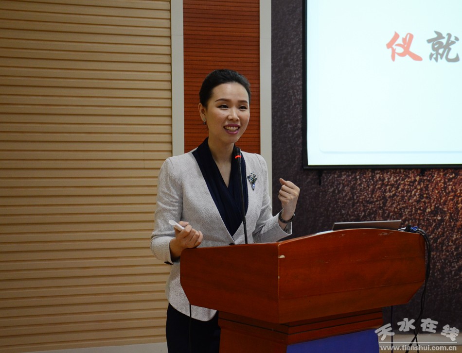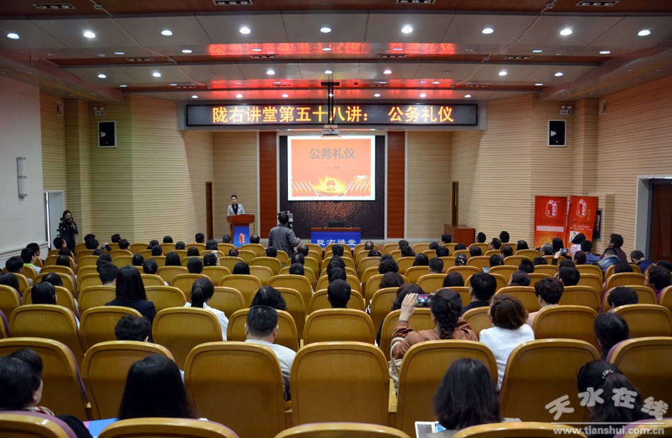 4月26日,“隴右講堂”第五十八講在天水市圖書(shū)館報(bào)告廳開(kāi)講,特邀中華禮儀研究會(huì)副會(huì)長(zhǎng)宋婧作了題為《公務(wù)禮儀》的專(zhuān)題講座。