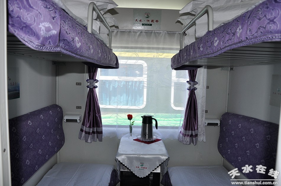 天水至敦煌“天水·伏羲號”的 Y671次列車是天水市真正意義上的首趟始發(fā)列車。使用1組25K型車體,列車編組14節(jié),其中軟臥1節(jié)、硬臥6節(jié)、硬座4節(jié)、餐車1節(jié)、行李車1節(jié)、發(fā)電車1節(jié);全程軟臥下鋪票價497.5元、硬臥下鋪325.5元、硬座177.5元。天水火車站14時43分始發(fā),途經隴西、蘭州、武威、金昌、張掖、嘉峪關、瓜州站,第二日8時56分終到敦煌站,單程運行里程1481km,用時18小時13分鐘,開1天停2天運行。