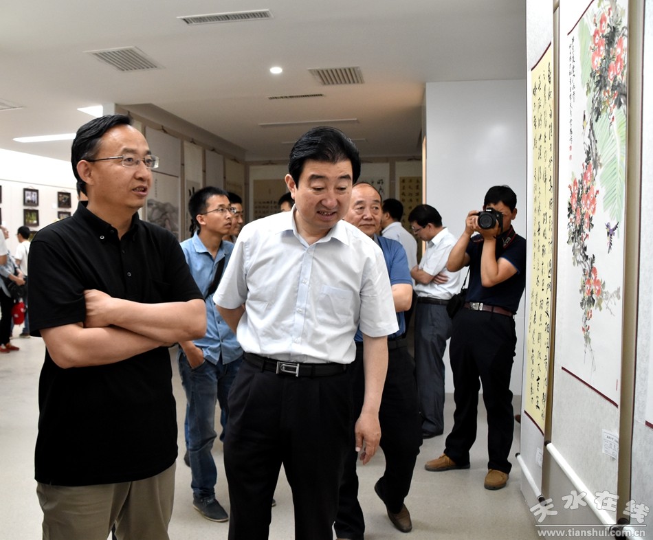6月20日,天水市首屆“美麗鄉(xiāng)村”暨“先鋒行動”書畫攝影作品展在天水國家農(nóng)業(yè)科技園區(qū)開展。市領(lǐng)導(dǎo)霍衛(wèi)平、王振宇觀看了展覽。