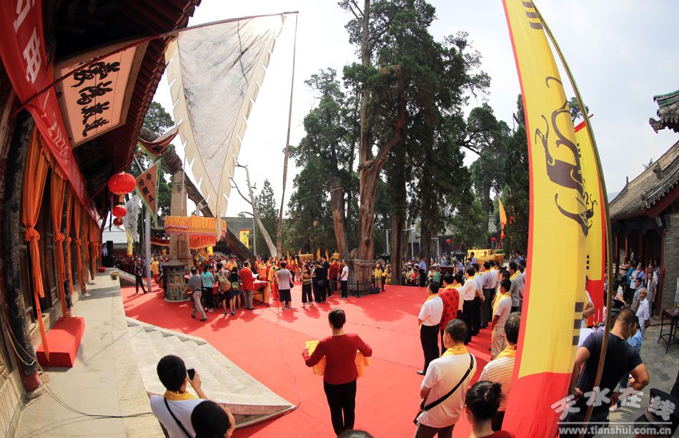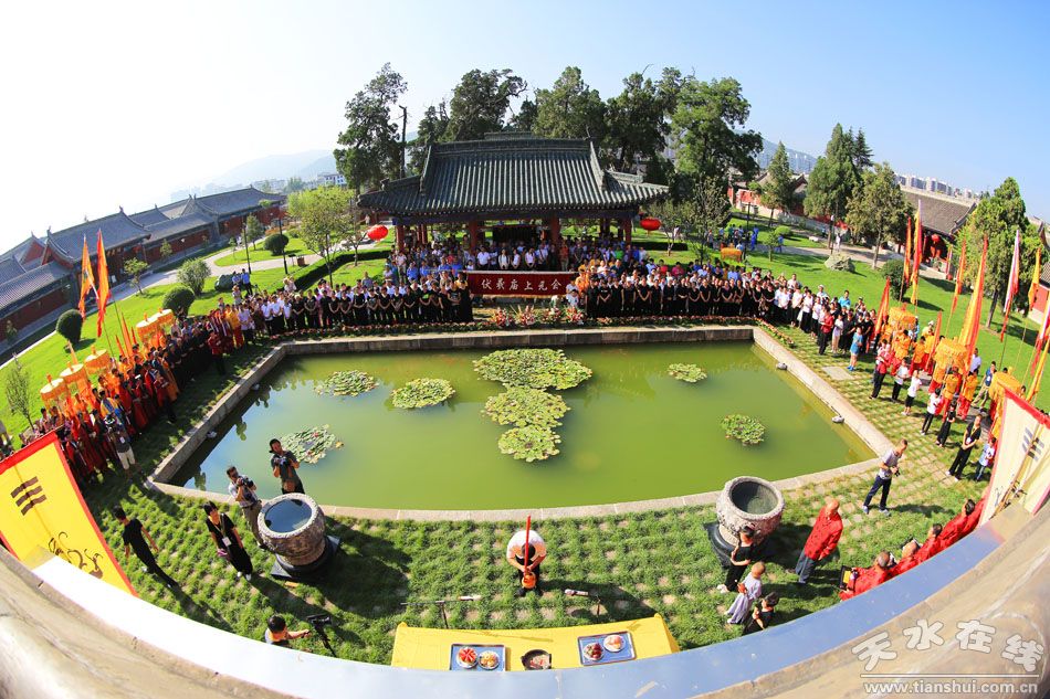 蒼松挺拔,翠柏含青,旗幡招展,古樂悠悠。2016年8月21日(農(nóng)歷七月十九日)上午,天水伏羲廟內(nèi)一派古樸典雅,肅穆莊嚴(yán),備受關(guān)注的“丙申(2016)年秋祭中華民族人文始祖太昊伏羲氏典禮”在這里隆重舉行。