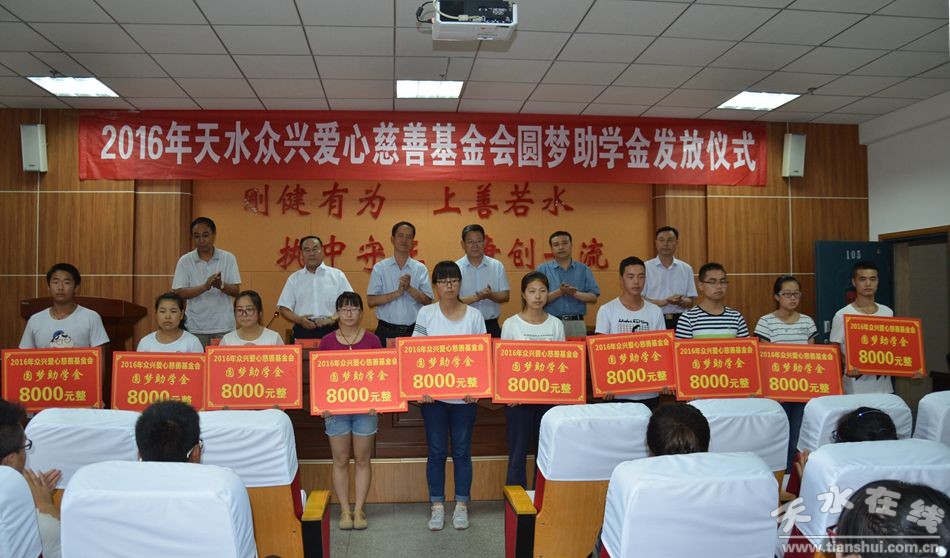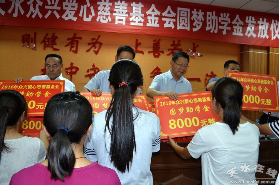 天水眾興愛(ài)心慈善基金會(huì)成立于2014年,于去年啟動(dòng)“助學(xué)圓夢(mèng)01號(hào)項(xiàng)目”。這個(gè)項(xiàng)目對(duì)天水五縣兩區(qū)考入二本及以上大學(xué)的孤兒、單親家庭、特困家庭學(xué)生進(jìn)行資助,資助時(shí)間為4年,每人每年8000元,將有4屆學(xué)生受助,預(yù)計(jì)投入資金650萬(wàn)元。