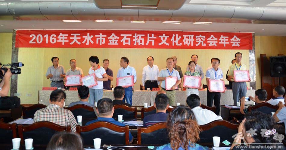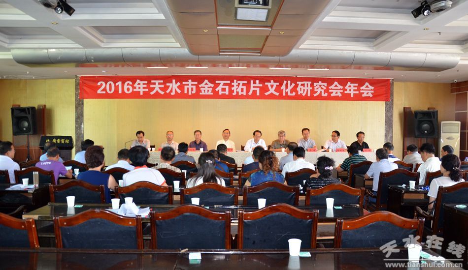 8月28日,天水市金石拓片文化研究會年會在天水廣電賓館舉行。市政協(xié)副主席安志宏、王振宇,原市人大常委會副主任鄧炎喜及來自隴南、天水師院等地的有關(guān)專家學(xué)者、金石拓片愛好者50多人參加會議。
