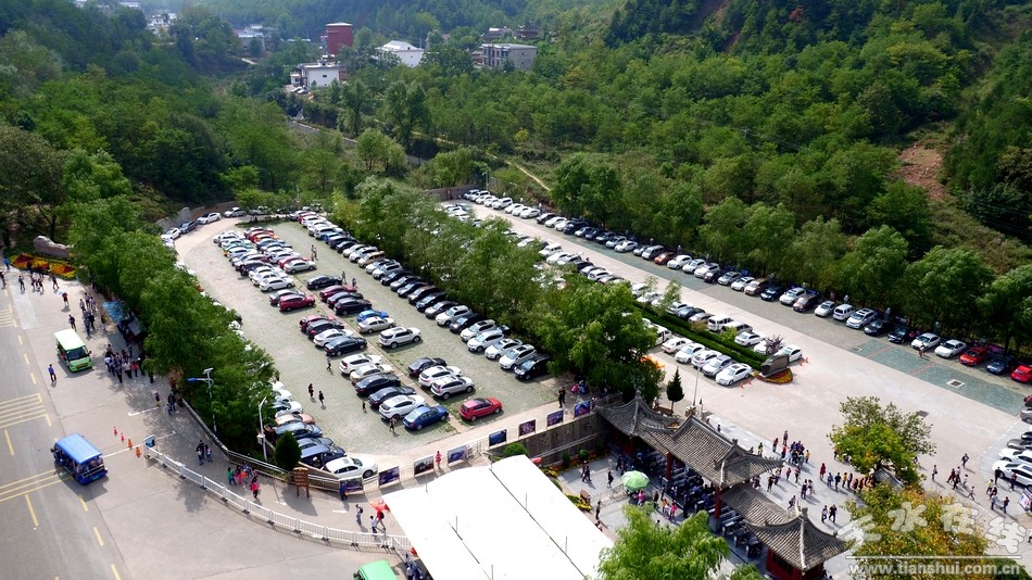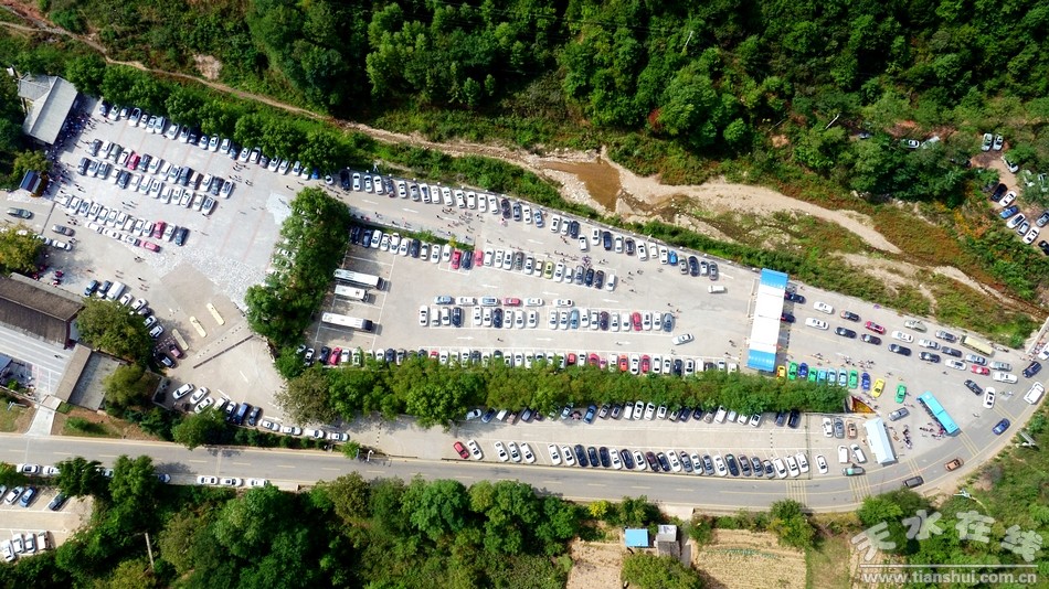 ▲麥賈公路上前往麥積山景區(qū)的車輛 天水在線2016年10月3日航拍 |