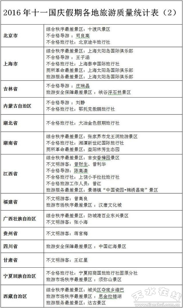 而對(duì)于未按要求及時(shí)上報(bào)負(fù)面信息的重慶、河北、河南、山東、江蘇、海南、云南等地旅游部門,國家旅游局將對(duì)其工作進(jìn)一步調(diào)查督促。