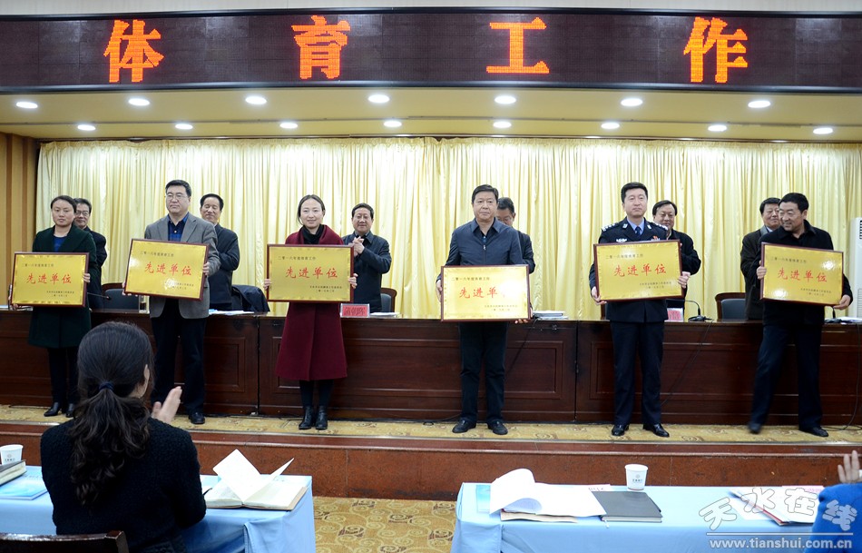 3月17日,天水市召開全市體育工作會議,貫徹落實全國、全省體育工作會議精神,回顧總結(jié)2016年全市體育工作,安排部署今年體育工作各項重點任務(wù)。市人大常委會副主任蒲朝暉、副市長張建杰、市政協(xié)副主席蘇定武參加會議。