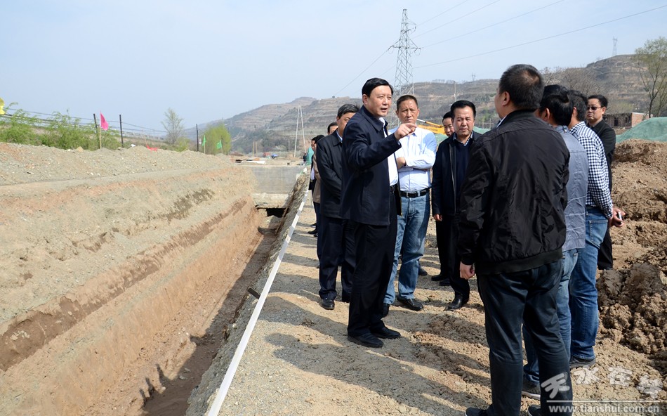 (在秦州區(qū)藉口鎮(zhèn)鄭集寨路口檢查桿線遷改和地下管網(wǎng)建設(shè)工作)