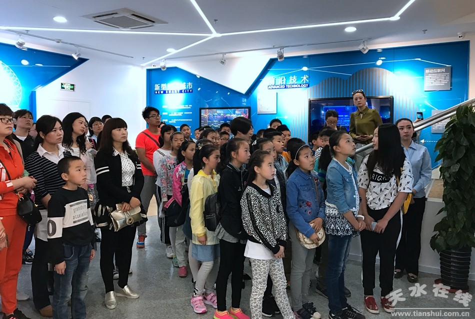 天水市實驗小學(xué)的師生們在展廳戰(zhàn)略布局區(qū)域觀看了天水市智慧城市規(guī)劃設(shè)計大片、在互動觸摸屏上體驗了智慧天水城市運營管理平臺、智慧旅游、綠色催化專家智庫、智慧政務(wù)、智慧民生等智慧城市項目成果。通過講解人員的介紹,師生及家長全面了解天水智慧城市的建設(shè),充分感受了智慧城市建設(shè)就在每個人的工作生活中。在指揮平臺區(qū)域,學(xué)生們還觀看了智慧校園、物聯(lián)網(wǎng)的科普短片,提升了校園學(xué)生對新技術(shù)新知識的普及掌握。參觀結(jié)束后,老師及家長對天水智慧城市建設(shè)寄語美好的期望及愿景,希望未來智慧天水能為老百姓提供用得上、用得好的智慧產(chǎn)品及應(yīng)用。