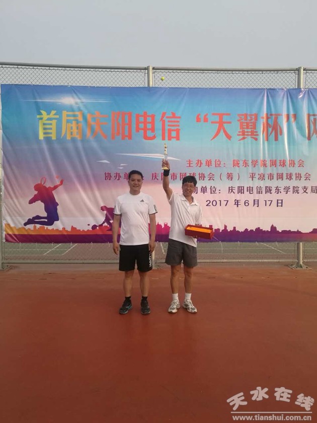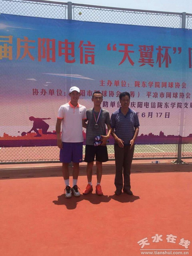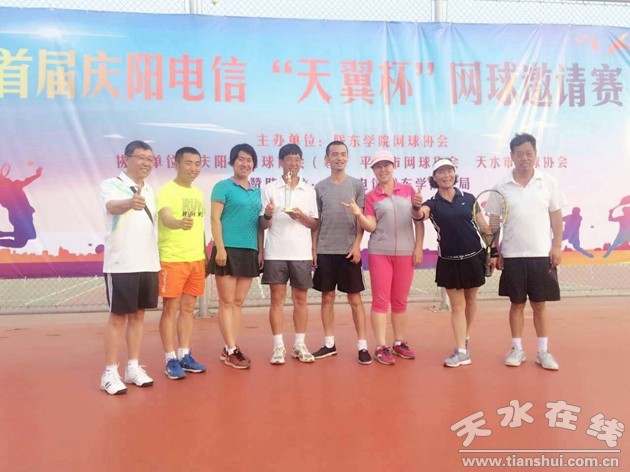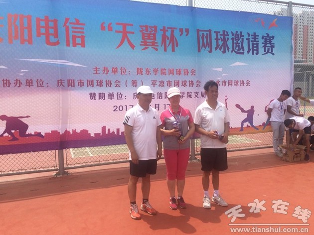 2017年6月16日至18日,由慶陽市網(wǎng)球協(xié)會主辦、隴東學院承辦、慶陽市電信公司協(xié)辦的首屆慶陽電信“天翼杯”網(wǎng)球邀請賽在隴東學院舉行。天水市網(wǎng)球協(xié)會精心選派的八名男女運動員參加了此次比賽,經(jīng)過三天的激烈角逐,我市運動員魏玉琴、王利琳包攬了女子單打前兩名;李曉明、魏玉琴及孟曉明、王利琳組合包攬了混合雙打前兩名;康健獲得了男子單打第二名;李曉明、康健組合獲得了男子雙打第二名,天水代表隊團體第二名的優(yōu)異成績。