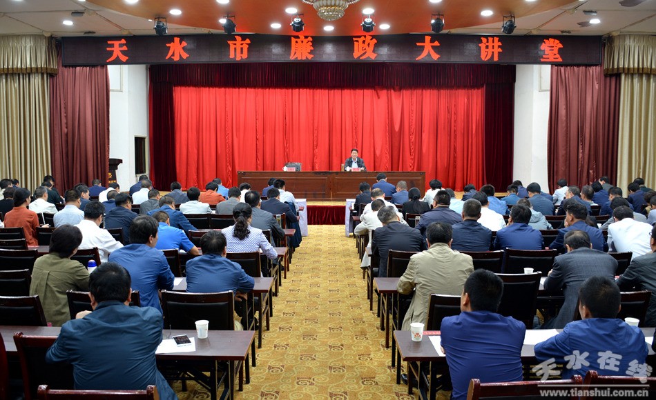 8月30日下午,天水市2017年廉政大講堂第三講在天水迎賓館開講,市委副書記、市長(zhǎng)王軍作了題為《深入推進(jìn)全面從嚴(yán)治黨,持續(xù)加強(qiáng)政府系統(tǒng)黨風(fēng)廉政建設(shè)》的主題宣講。王軍強(qiáng)調(diào),各縣區(qū)政府、市政府各部門、單位黨員領(lǐng)導(dǎo)干部要把思想和行動(dòng)統(tǒng)一到中央和省、市的決策部署上來,認(rèn)真履行全面從嚴(yán)治黨政治責(zé)任,堅(jiān)定不移把黨風(fēng)廉政建設(shè)和反腐敗斗爭(zhēng)推向深入,保持懲治腐敗高壓態(tài)勢(shì),努力打造為民務(wù)實(shí)的清廉政府。