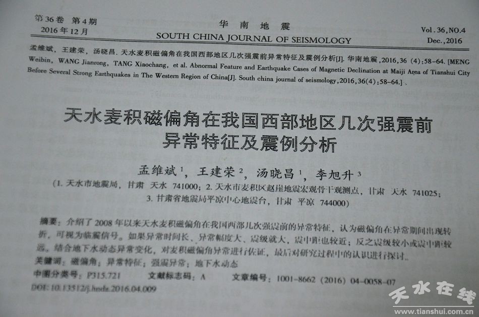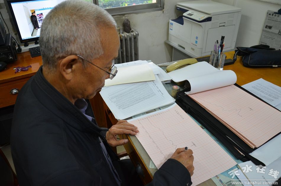 從那時起,無論風霜雨雪,王建榮都堅持在每天的8時、14時、20時三個時間段進行觀測,必要時還得加密觀測。同時,他還自費收集天水及鄰近地區(qū)30多個臺站的地下流體資料,結合磁偏角數據,在坐標紙上點繪,然后進行綜合研究,形成震情分析報告。這些原本需要大量人力物力財力的工作,王建榮一干就是23年。