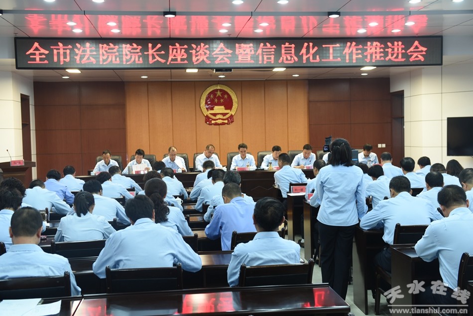 9月7日,天水市中級人民法院組織召開全市法院院長座談會,會議傳達(dá)了全省法院院長會議、全省法院信息化工作會議、市委七屆三次全體會議精神。縣區(qū)法院院長作了匯報交流發(fā)言。會上宣讀了《關(guān)于對2017年1-8月全是審判運(yùn)行態(tài)勢情況的通報》和《關(guān)于印發(fā)<天水市中級人民法院關(guān)于加快推進(jìn)全市“智慧法院”建設(shè)的實施方案>的通知》。黨組書記、院長馬忠福作了重要講話。