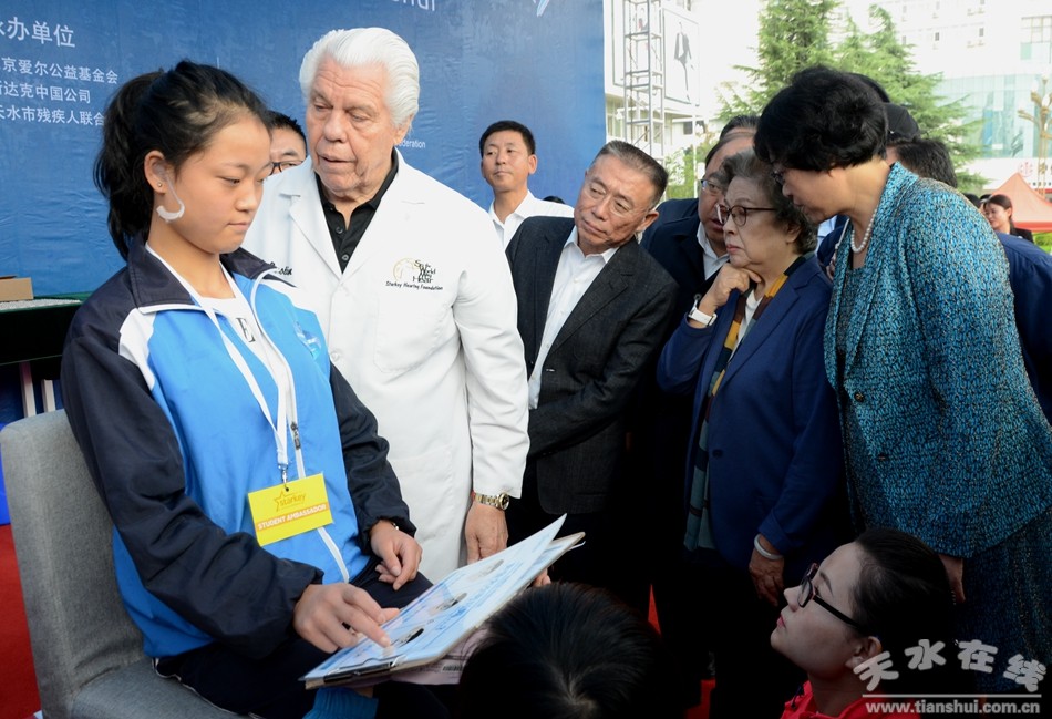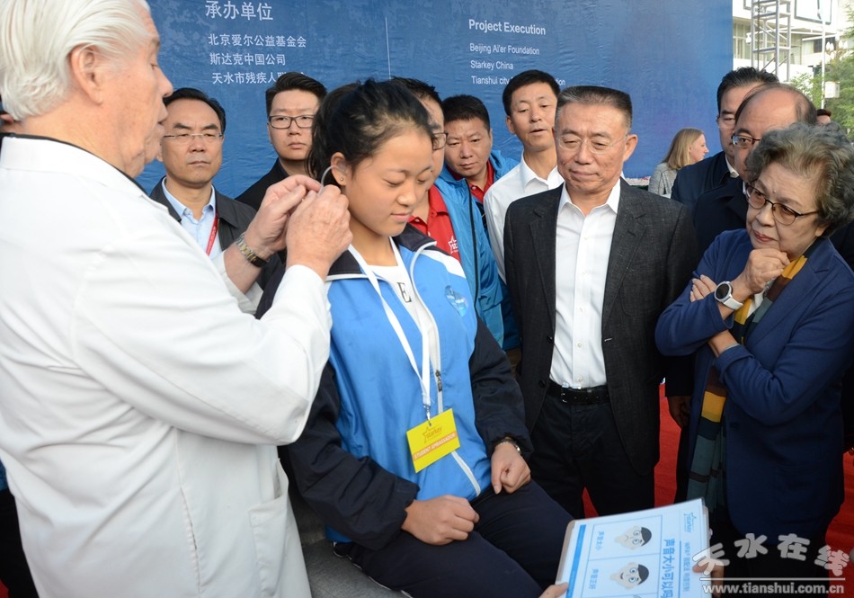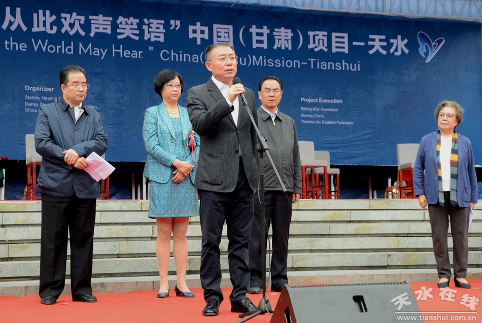 天水市委書(shū)記王銳宣布項(xiàng)目啟動(dòng)。美國(guó)斯達(dá)克聽(tīng)力基金會(huì)創(chuàng)始人、首席執(zhí)行官比爾·奧斯汀,中國(guó)市長(zhǎng)協(xié)會(huì)顧問(wèn)、北京愛(ài)爾公益基金會(huì)創(chuàng)會(huì)會(huì)長(zhǎng)陶斯亮,中國(guó)市長(zhǎng)協(xié)會(huì)副秘書(shū)長(zhǎng)、北京愛(ài)爾公益基金會(huì)楊捷,甘肅省殘聯(lián)副理事長(zhǎng)蔣錄基,斯達(dá)克中國(guó)公司董事、總經(jīng)理胡曉宇,天水市委常委、副市長(zhǎng)宮輝出席啟動(dòng)儀式。