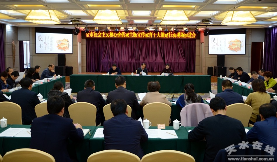 10月25日,在黨的十九大勝利閉幕之際,全市社會(huì)主義核心價(jià)值觀主題宣傳教育十大創(chuàng)建行動(dòng)現(xiàn)場會(huì)在麥積區(qū)召開。會(huì)上,學(xué)習(xí)宣傳黨的十九大精神,認(rèn)真貫徹落實(shí)全省社會(huì)主義核心價(jià)值觀主題宣傳教育十大創(chuàng)建行動(dòng)現(xiàn)場會(huì)議精神,安排部署我市持續(xù)開展社會(huì)主義核心價(jià)值觀主題宣傳教育十大創(chuàng)建行動(dòng),推動(dòng)全市社會(huì)主義核心價(jià)值觀培育實(shí)踐工作不斷向廣度和深度拓展。