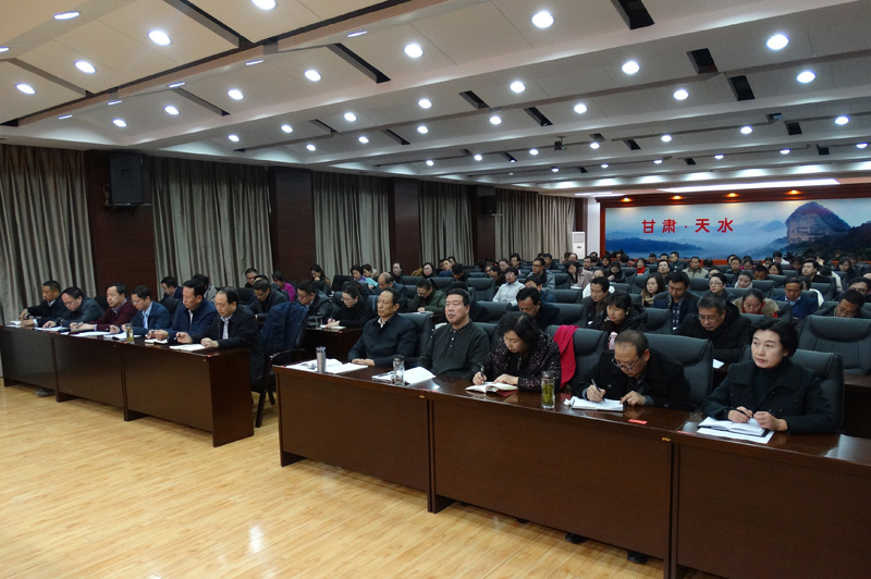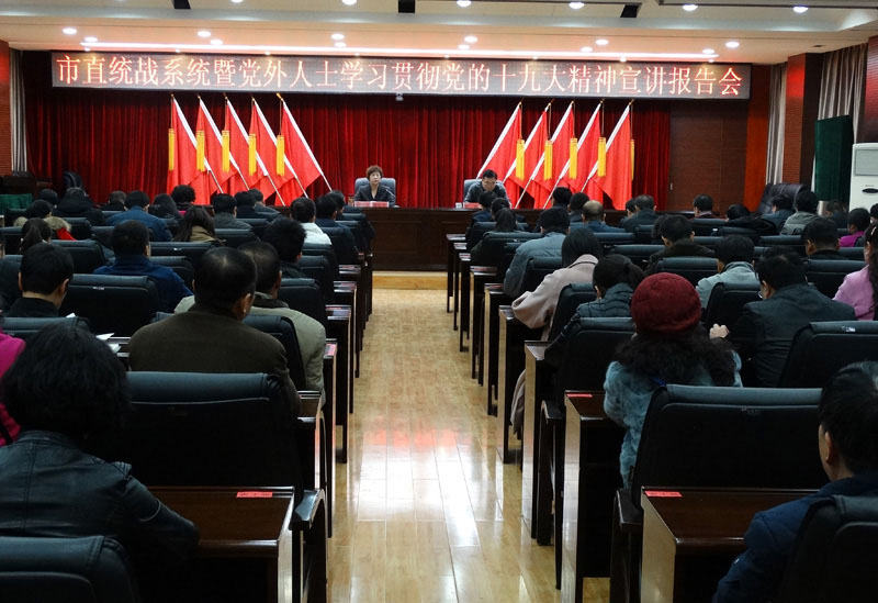 12月5日,天水市委常委、統(tǒng)戰(zhàn)部部長溫利平為統(tǒng)戰(zhàn)系統(tǒng)干部職工和黨外代表人士宣講十九大精神。