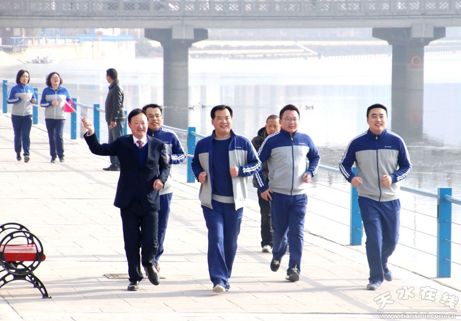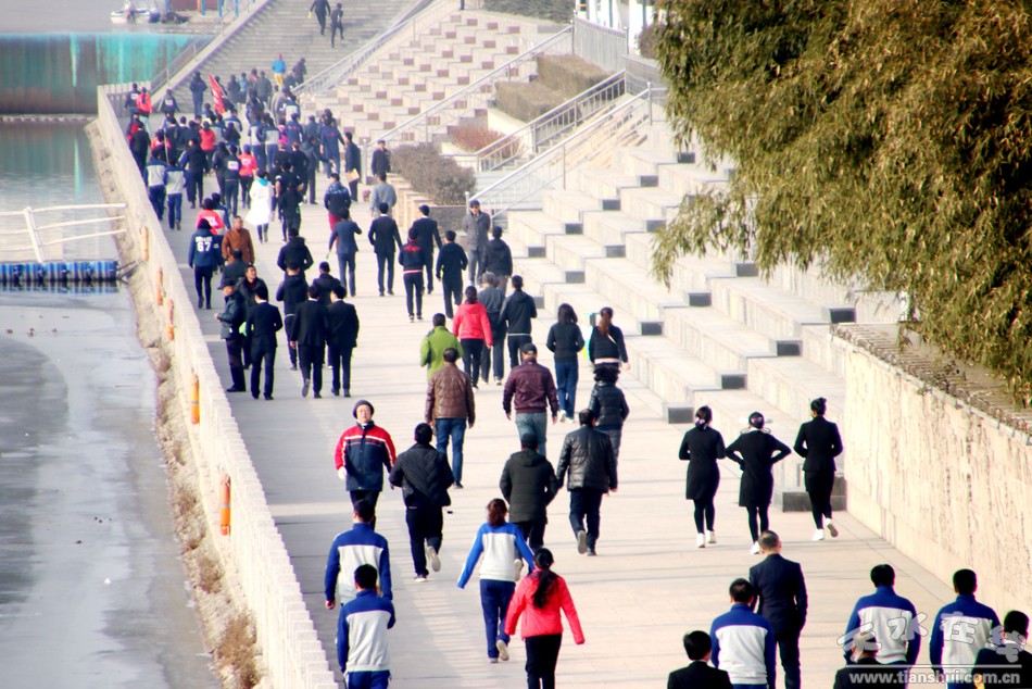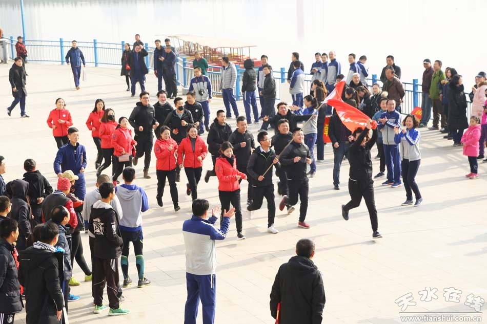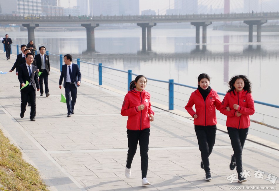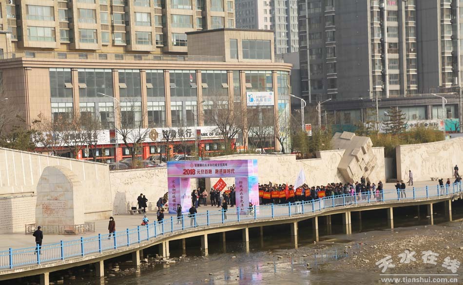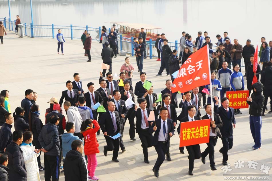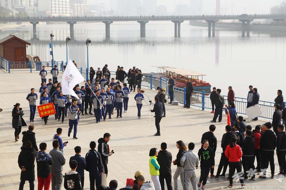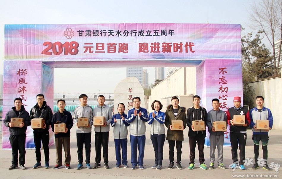 2018年1月1日上午10時,甘肅銀行天水分行攜手天水電視臺在天水湖畔舉行甘肅銀行天水分行成立五周年2018元旦“環(huán)湖跑”活動。來自甘肅銀行天水分行等16家企事業(yè)單位的200多名健身愛好者,從天水湖水岸平臺出發(fā),環(huán)繞天水湖進行了全程6公里的跑步健身活動。獲得前10名的選手獲得了甘肅銀行天水分行頒發(fā)的獎品。
