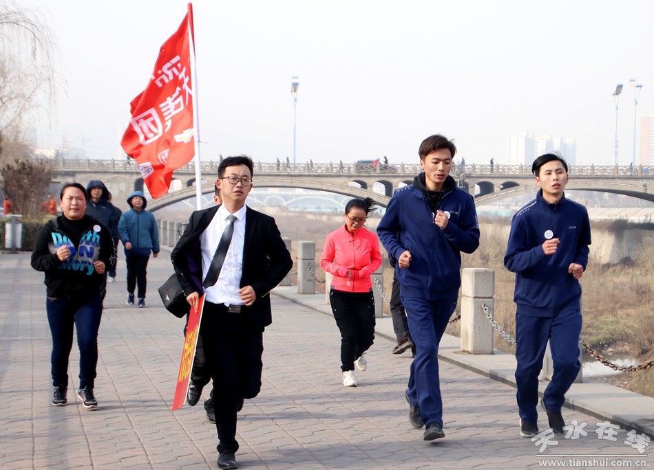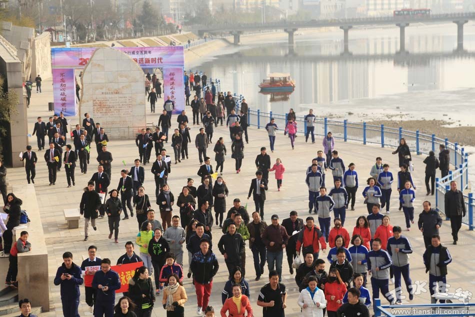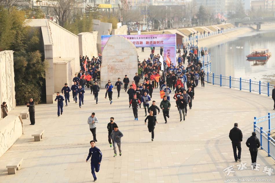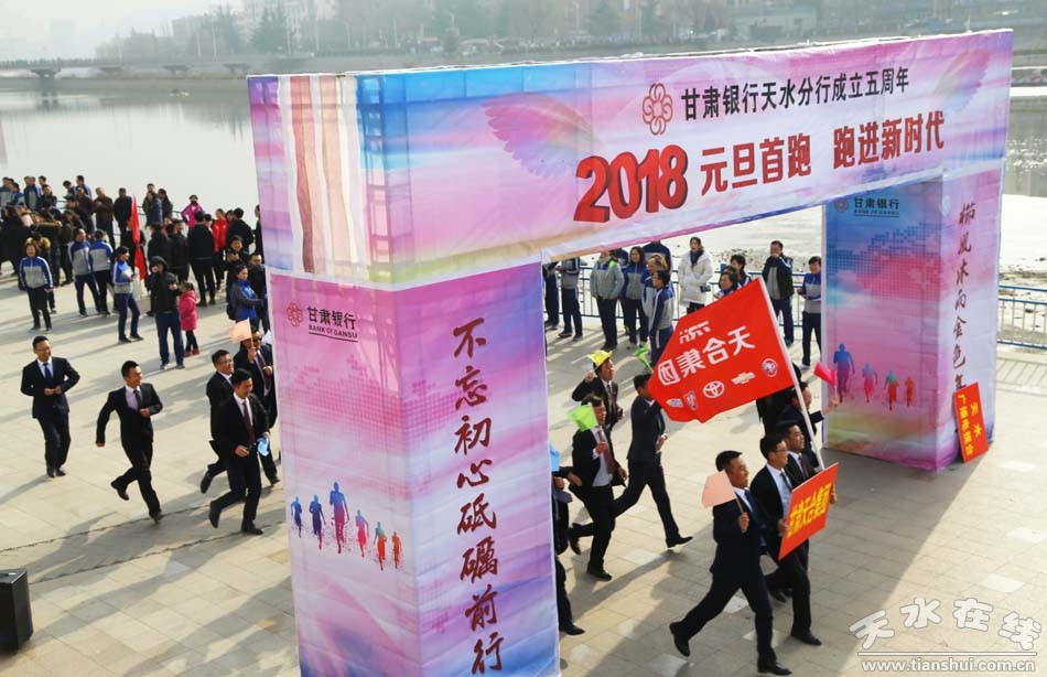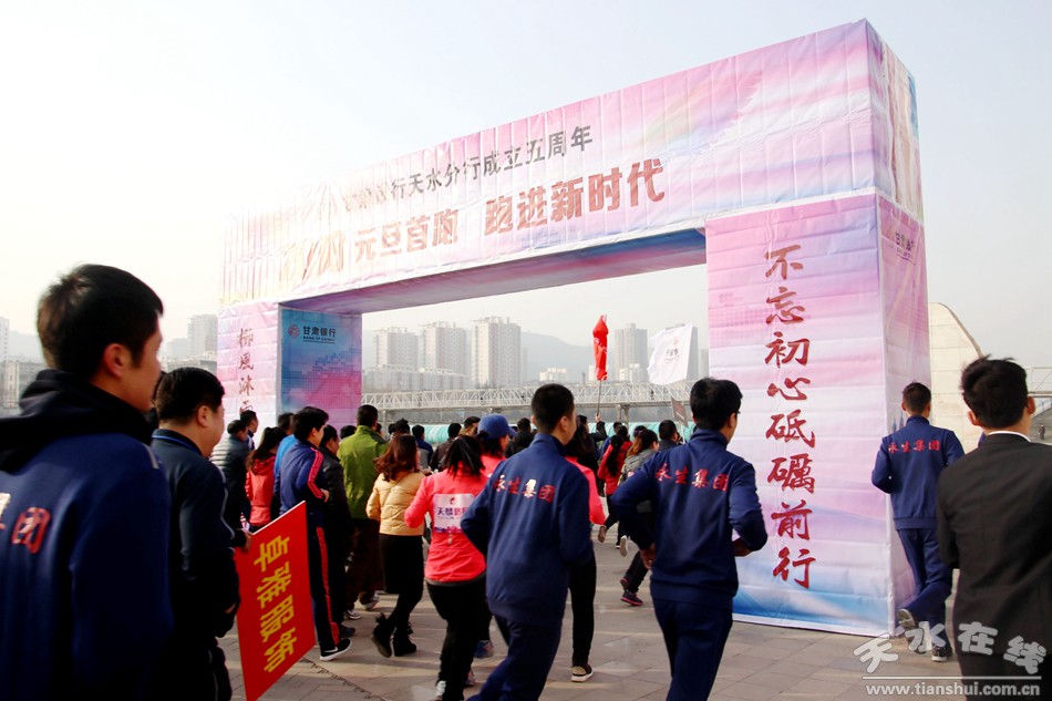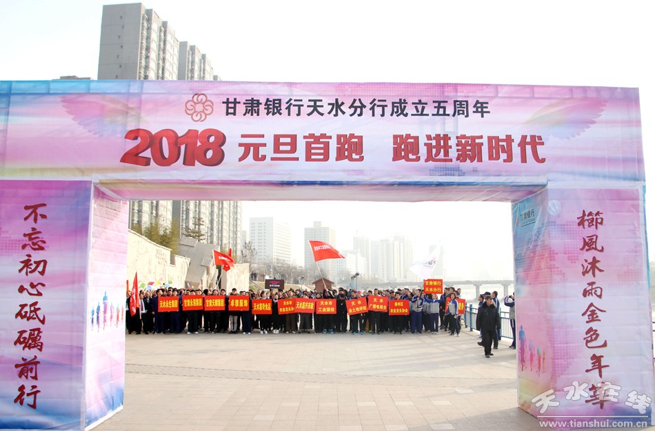 甘肅銀行天水分行自2013年成立以來,在市委、市政府和社會各界的鼎力支持和充分信任下,在全行員工的不懈努力和開拓創(chuàng)新下,甘肅銀行天水分行破繭而生,從無到有,從小到大,截至2017年末,一般性存款余額突破100億元大關,向天水當地投放貸款累計超過180億元,累計向天水五縣兩區(qū)上繳各種稅金1.2億元,向社會公益事業(yè)捐資捐物550多萬元,積極支持了天水地方經濟社會轉型升級發(fā)展。此次發(fā)起組織“元旦首跑” 活動既是甘肅銀行天水分行積極參與全民健身的具體表現,同時也拉開了該行五周年行慶系列活動的序幕。