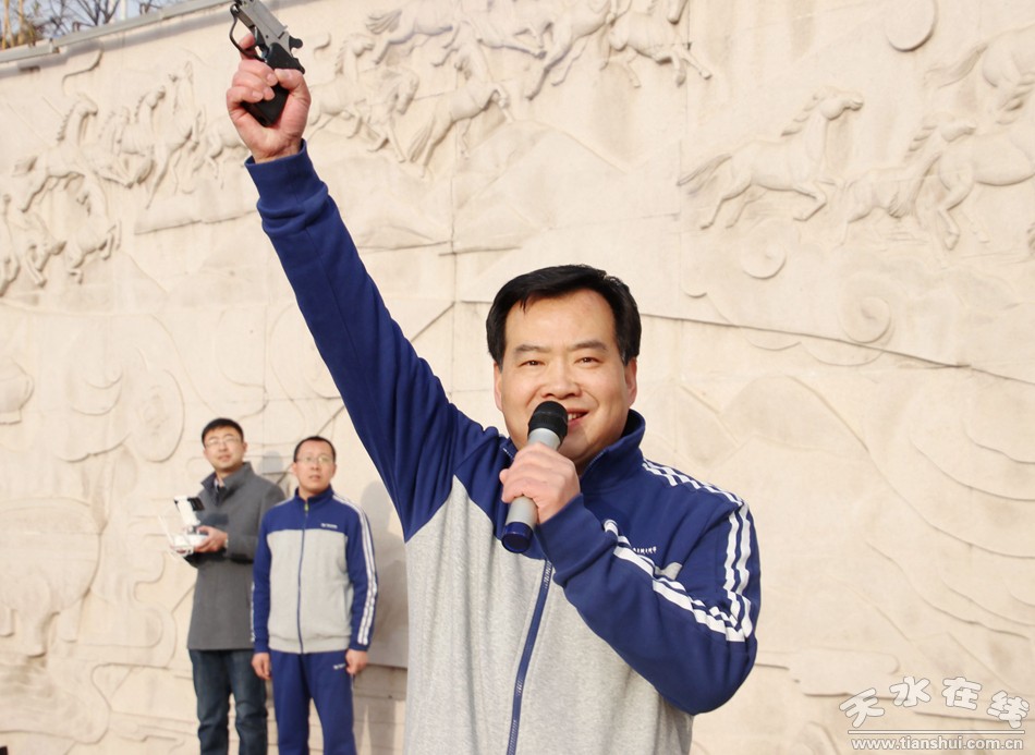 (甘肅銀行天水分行黨委書記、行長陳金輝鳴槍發(fā)令。)