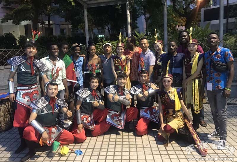 在每一場演出中,都由外籍和澳門主持人同臺(tái)用中葡兩國語言向來賓和澳門觀眾隆重介紹天水,同時(shí)由我市演員主持人向現(xiàn)場的觀眾和參演的外籍演職人員推介天水厚重的歷史文化和豐富的旅游資源,并發(fā)放中英文宣傳資料。特別是借助上演的舞蹈《天女散花》推介麥積山石窟文化,西部民間舞蹈《非遺精粹》推介伏羲文化和民俗文化。市文化和旅游局副局長楊春曉及市歌舞藝術(shù)研究中心演職人員在接受澳門最大的TDM電視臺(tái)的兩次采訪時(shí)專門進(jìn)行了文化旅游推介。