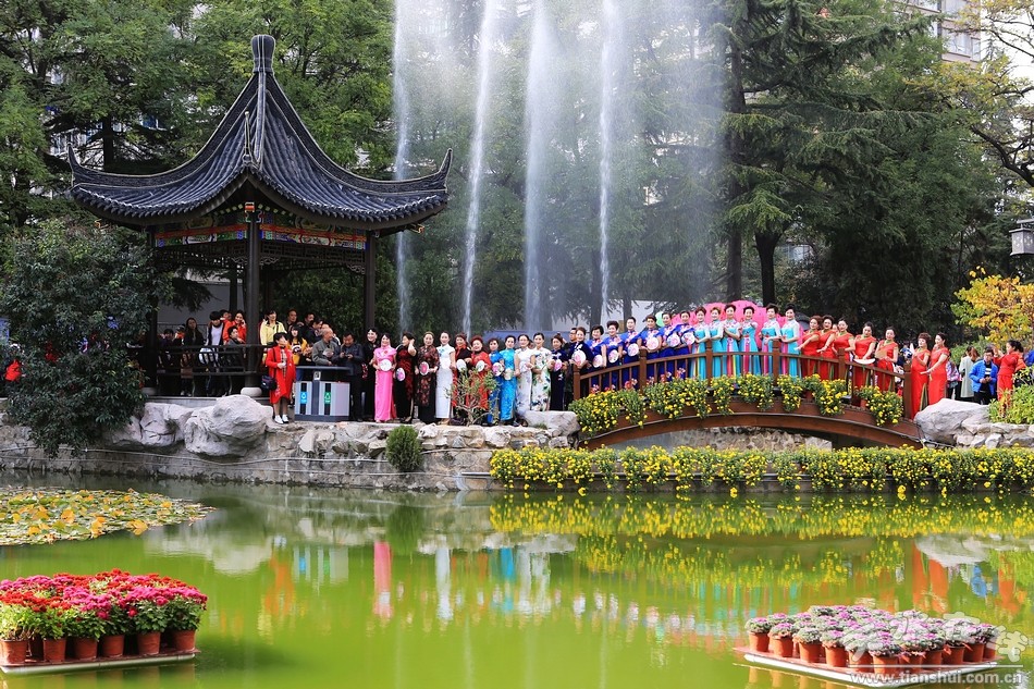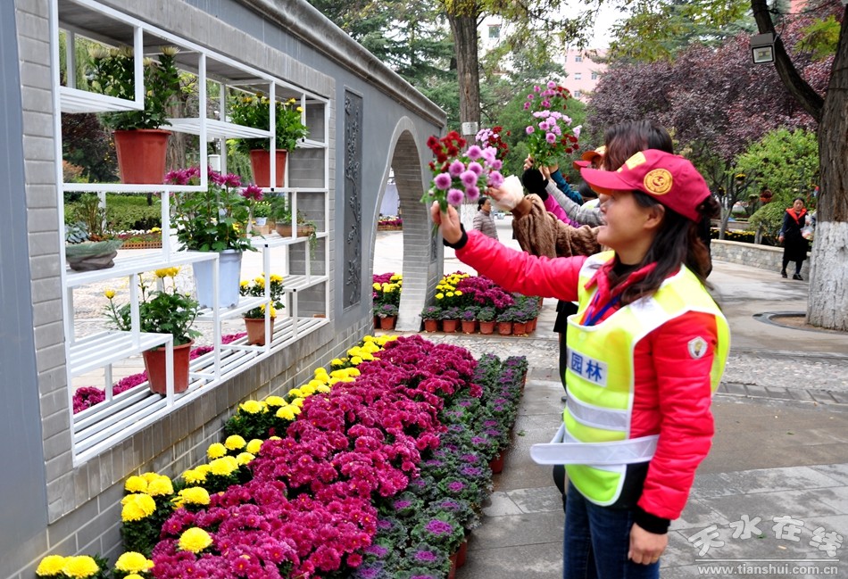 秦州菊展自開展以來(lái),省內(nèi)外游客絡(luò)繹不絕,模特隊(duì)、武術(shù)隊(duì)、文藝愛好者等先后登場(chǎng)亮相,秦州區(qū)回民小學(xué)、公園小學(xué)、天水市六中及幼兒園等20多所學(xué)校也組織學(xué)生游園賞菊。同時(shí),蘭州植物園、麥積區(qū)園林局等園林行業(yè)單位也蒞臨參觀。