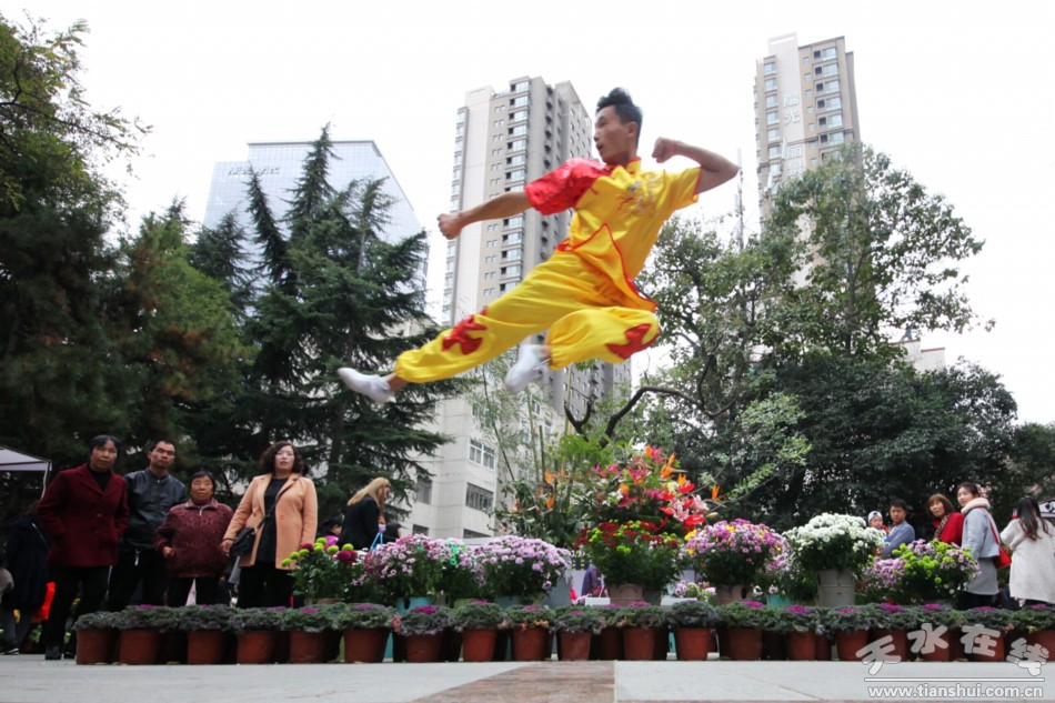 (秦州菊展上的武術(shù)表演 天水在線攝)