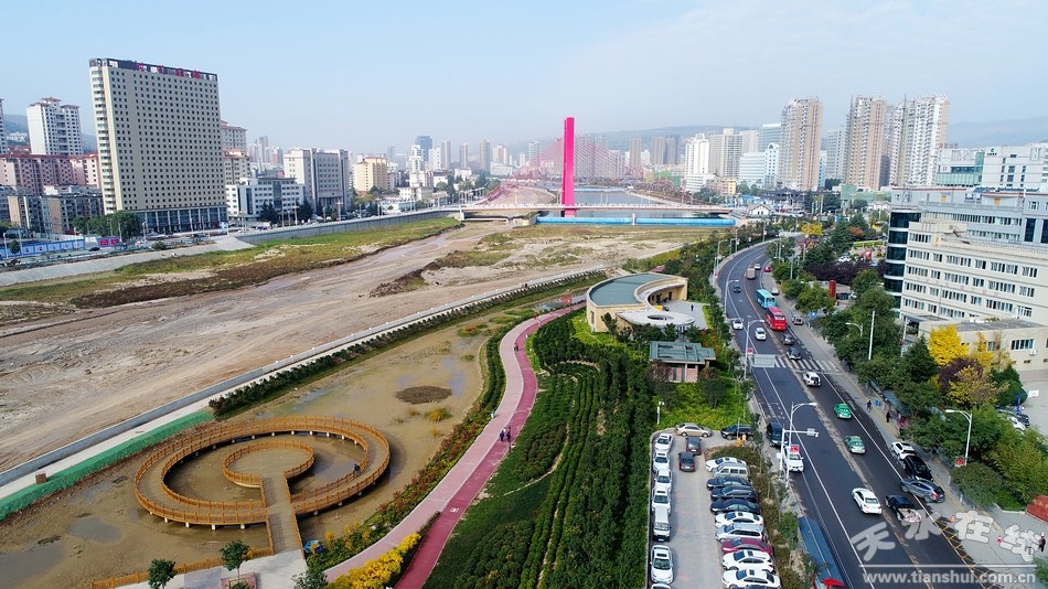 ▲天水在線2018年10月27日航拍的紅橋