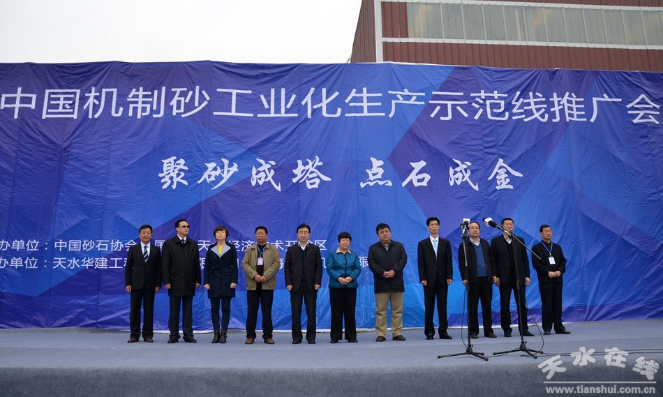 ▲2015年4月11日,中國(guó)機(jī)制砂工業(yè)化生產(chǎn)示范線推廣會(huì)暨天水華建工程新材料有限年產(chǎn)300萬(wàn)噸機(jī)制砂石生產(chǎn)線啟動(dòng)儀式,在國(guó)家級(jí)天水經(jīng)濟(jì)技術(shù)開(kāi)發(fā)區(qū)社棠工業(yè)園舉行。