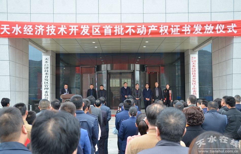 ▲2016年10月25日,天水經(jīng)濟(jì)技術(shù)開(kāi)發(fā)區(qū)不動(dòng)產(chǎn)權(quán)證書(shū)頒發(fā)儀式在開(kāi)發(fā)區(qū)管委會(huì)舉行。