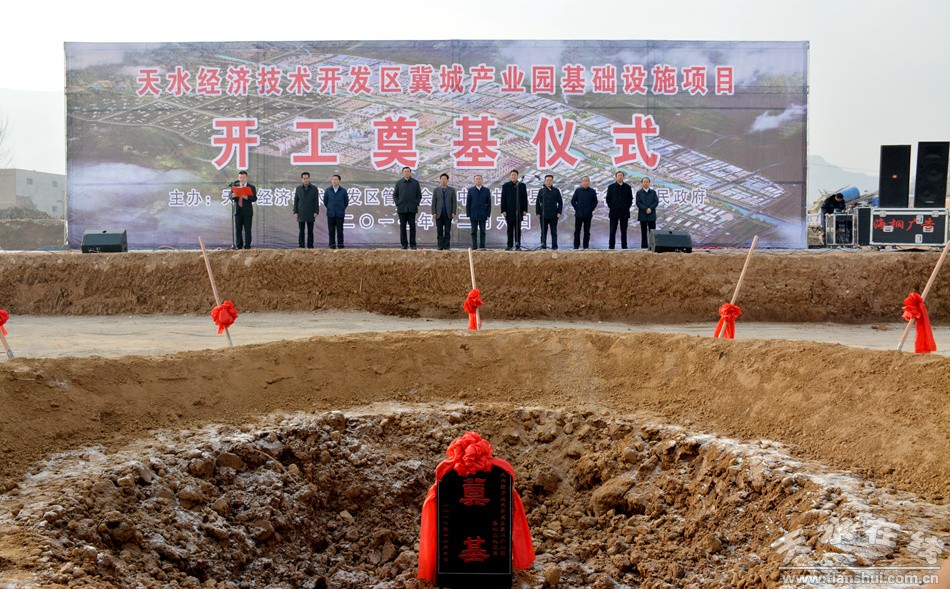 ▲2017年12月6日上午,天水經(jīng)濟(jì)技術(shù)開(kāi)發(fā)區(qū)冀城產(chǎn)業(yè)園基礎(chǔ)設(shè)施項(xiàng)目在甘谷縣奠基開(kāi)工,這標(biāo)志著冀城產(chǎn)業(yè)園正式開(kāi)工建設(shè),也標(biāo)志著天水經(jīng)濟(jì)技術(shù)開(kāi)發(fā)區(qū)擴(kuò)區(qū)增容工作取得了重要突破。市委書(shū)記王銳宣布項(xiàng)目開(kāi)工。市委副書(shū)記、市長(zhǎng)王軍在開(kāi)工儀式上講話。