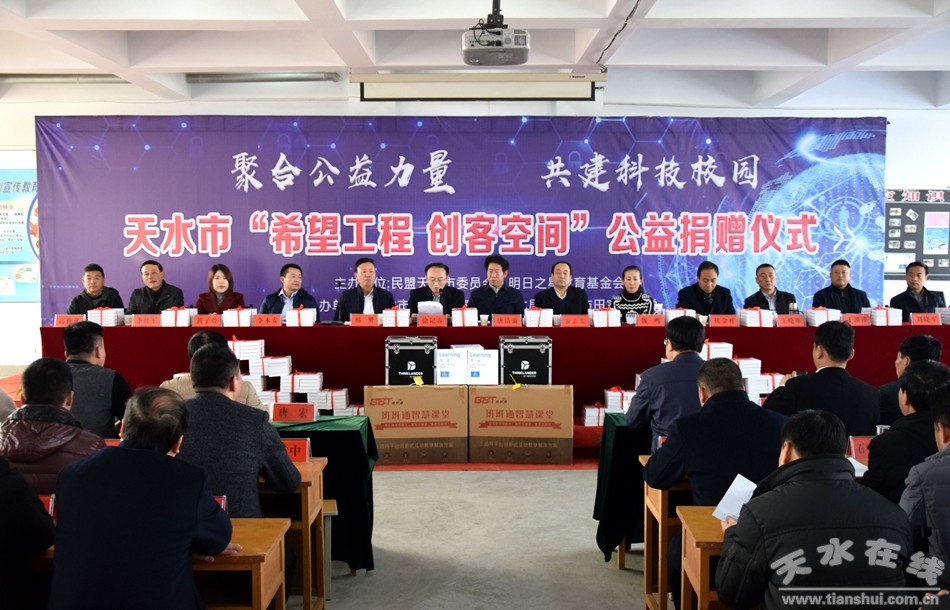 “希望工程 創(chuàng)客空間”公益捐贈(zèng)活動(dòng)是明日之星教育基金會(huì)發(fā)起,面向貧困地區(qū)中、小學(xué)校和學(xué)生的捐資助學(xué)項(xiàng)目。將為全省14個(gè)市州80個(gè)縣區(qū)義務(wù)教育階段的中小學(xué)捐贈(zèng)價(jià)值3200余萬元的教育教學(xué)資源。經(jīng)民盟甘肅省委、天水市委前期聯(lián)系引進(jìn)和洽談對(duì)接,達(dá)成全市教育資源捐贈(zèng)協(xié)議。