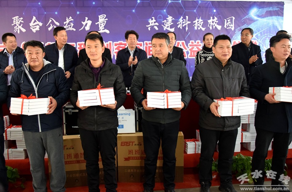 12月18日,“希望工程 創(chuàng)客空間”公益捐贈(zèng)活動(dòng)在天水市第四中學(xué)(天水市田家炳中學(xué))舉行。民盟甘肅省委會(huì)副主委、民盟蘭州市委會(huì)主委唐浩漩,天水市人大常委會(huì)副主任、民盟天水市委會(huì)主委安志宏出席捐贈(zèng)活動(dòng)。