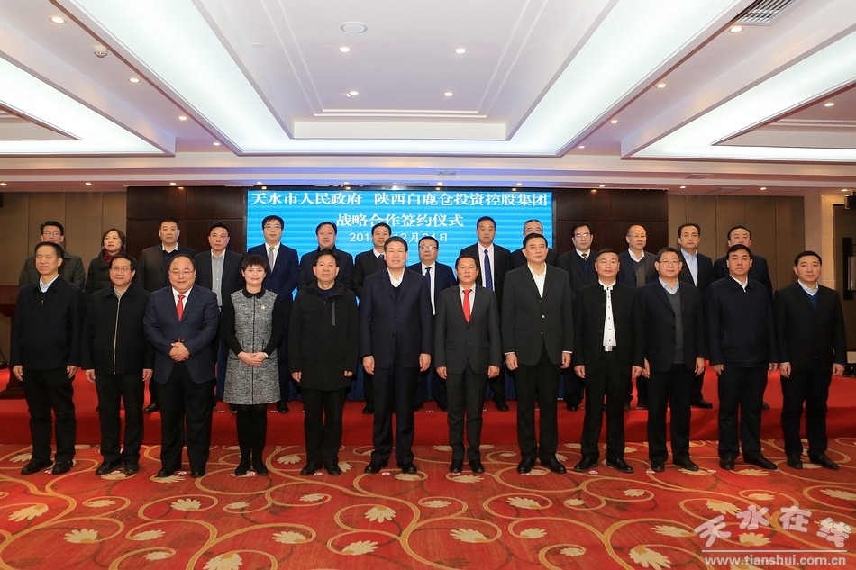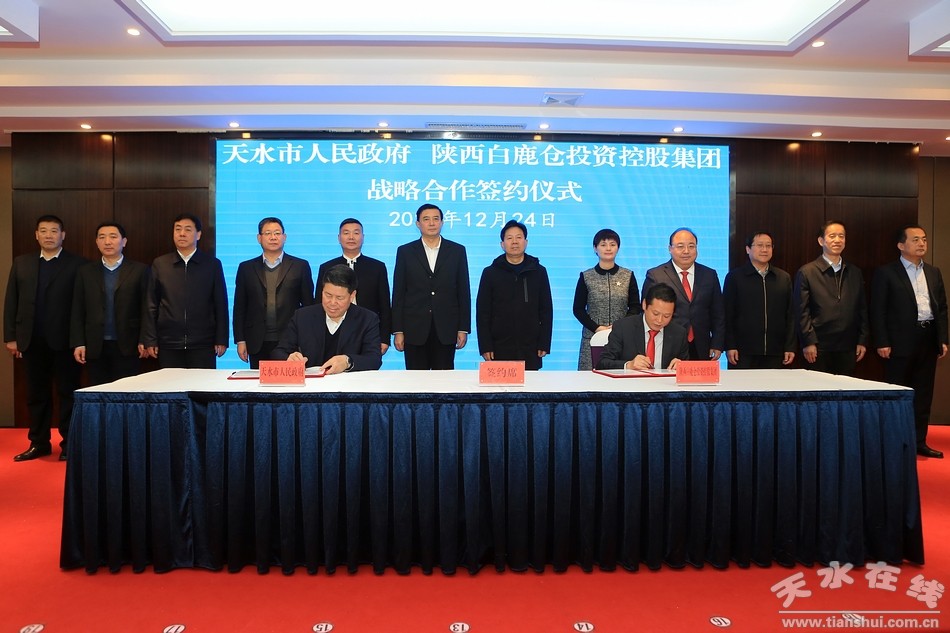 (市委副書記、市長王軍和陜西白鹿倉投資控股集團董事長董旭鋒共同簽訂了《天水·白鹿倉國際旅游度假區(qū)項目合作投資框架協(xié)議》。)