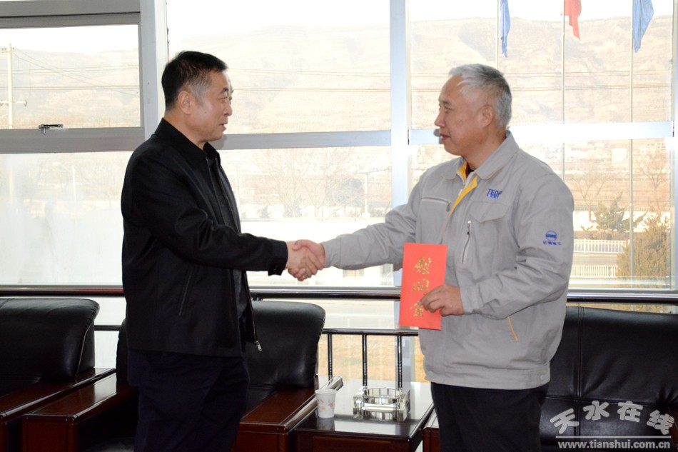 新春佳節(jié)來臨之際,1月18日下午,天水市人大常委會主任蔣曉強帶領(lǐng)市直有關(guān)部門負責人到天水電氣傳動研究所有限責任公司,看望慰問聯(lián)系的專家朱奇先,為他送去慰問金和新春祝福,并通過他向全市科技工作者致以親切的問候。