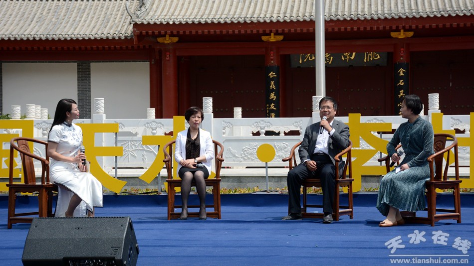 開幕式上,甘肅省作協(xié)主席馬步升介紹了天水實(shí)力作家改稿會(huì)情況;津京天水籍作家、藝術(shù)家向“中國(guó)天水·李杜詩(shī)歌節(jié)”組委會(huì)贈(zèng)送了書畫作品。著名國(guó)學(xué)大師、西北師大資深教授趙逵夫,《小說(shuō)選刊》副主編李曉東以及天水一中校長(zhǎng)李強(qiáng)、天水市逸夫?qū)嶒?yàn)中學(xué)校長(zhǎng)沈建玲、天水市實(shí)驗(yàn)小學(xué)校長(zhǎng)王增梅等嘉賓還分別圍繞古漢水與“天水”之名的來(lái)由,天水與李白、杜甫的情緣,詩(shī)歌、詩(shī)教與中小學(xué)人文教育等話題,進(jìn)行了精彩暢談。