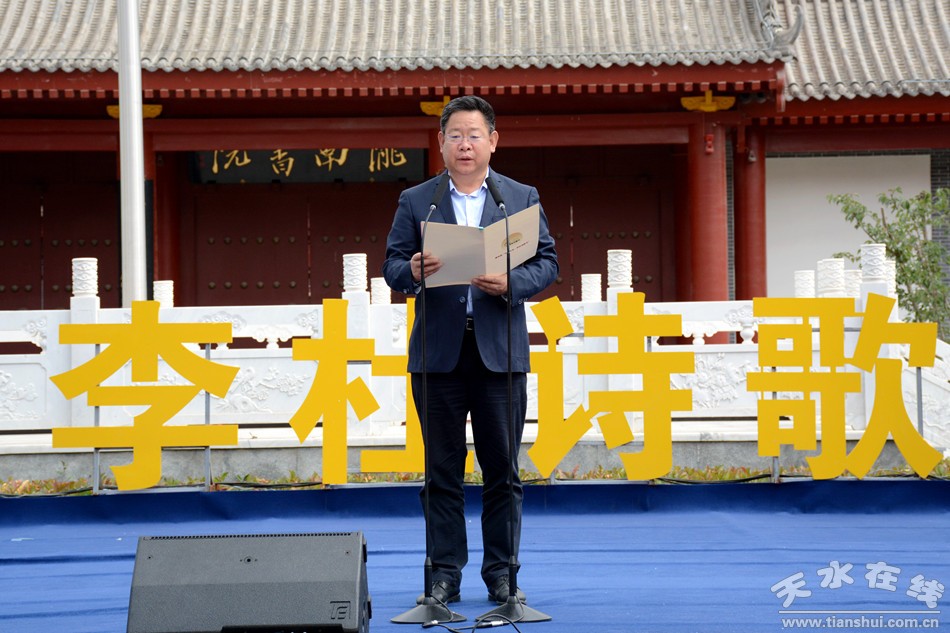 逯克宗在開幕式上致辭,向來(lái)賓簡(jiǎn)要介紹了“中國(guó)天水·李杜詩(shī)歌節(jié)”舉辦及系列活動(dòng)開展情況,并希望各位詩(shī)人、作家以“中國(guó)天水·李杜詩(shī)歌節(jié)”為橋梁紐帶,多來(lái)天水做客采風(fēng),尋訪先賢足跡,分享“詩(shī)意天水”,書寫時(shí)代強(qiáng)音,為宣傳好天水加油鼓勁。