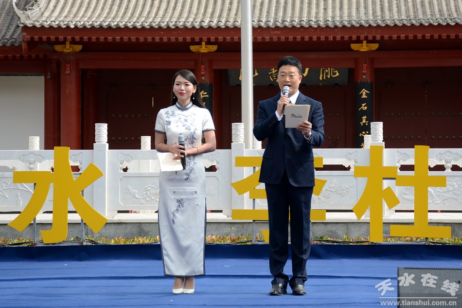 人民日?qǐng)?bào)社甘肅分社社長(zhǎng)董洪亮為第四屆“中國(guó)天水·李杜詩(shī)歌節(jié)”標(biāo)徽揭幕。中共天水市委常委、宣傳部部長(zhǎng)張建杰宣布第四屆“中國(guó)天水·李杜詩(shī)歌節(jié)”開幕。