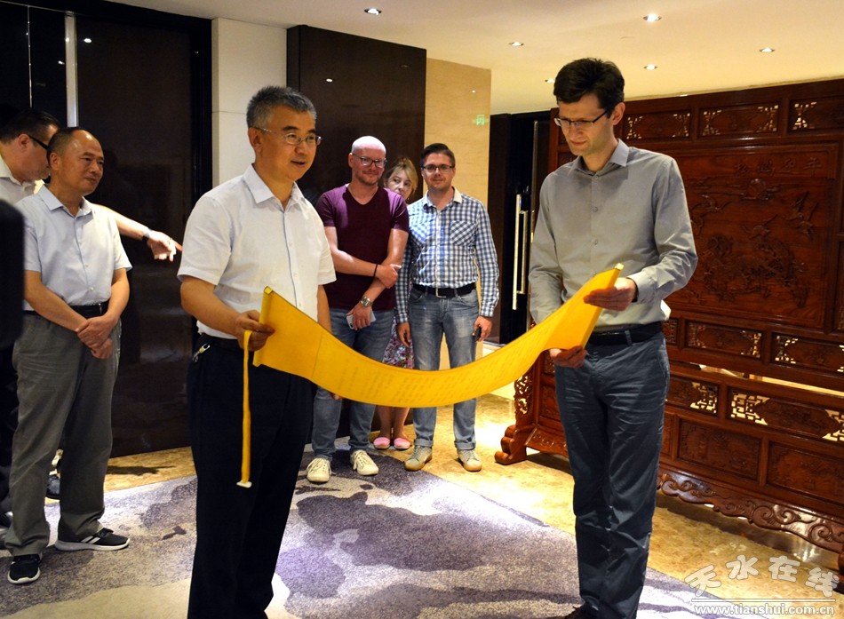 趙四輩在會見時代表市委、市政府向代表團一行來訪表示歡迎,向代表團介紹了我市基本情況。他說,天水是“一帶一路”重要節(jié)點城市,也是全國歷史文化名城,歷史文化悠久、交通十分便利、工農(nóng)業(yè)基礎(chǔ)良好,與白俄羅斯產(chǎn)業(yè)互補性強。他希望通過此次代表團來訪,深入了解天水,宣傳天水、推介天水,增進白俄羅斯人民對天水的了解、對甘肅的了解,同時搭建橋梁和紐帶,為促進雙方在人文交流、經(jīng)貿(mào)往來、文化旅游等多領(lǐng)域合作做出積極貢獻。