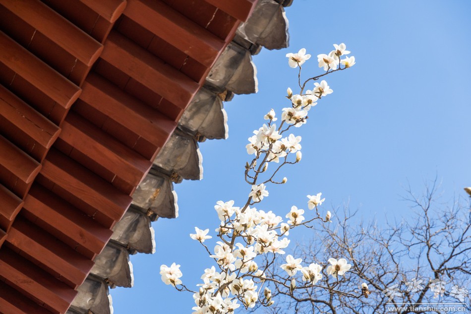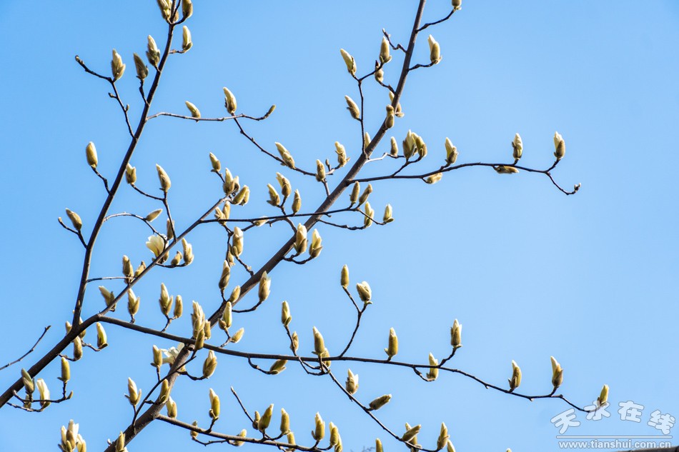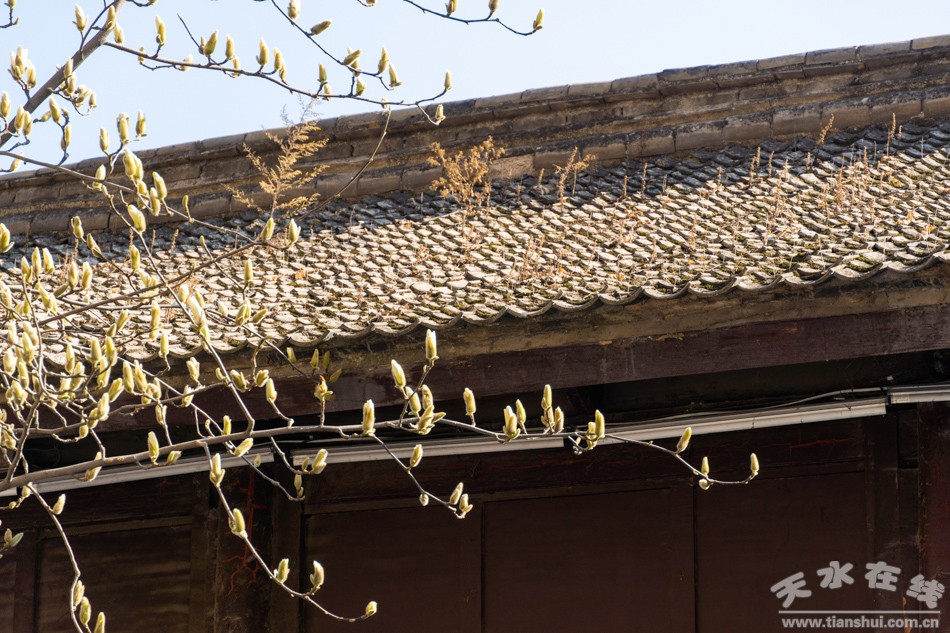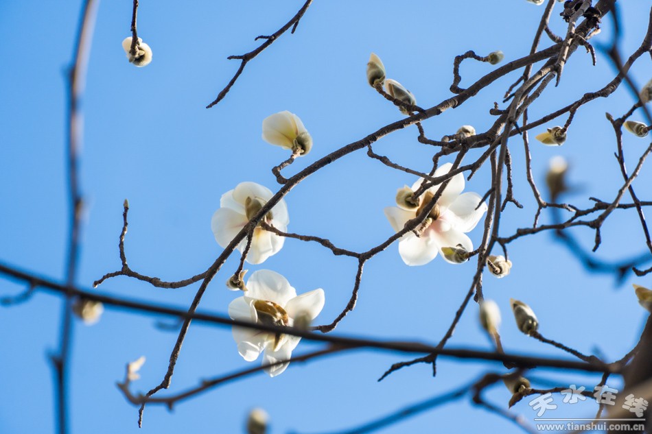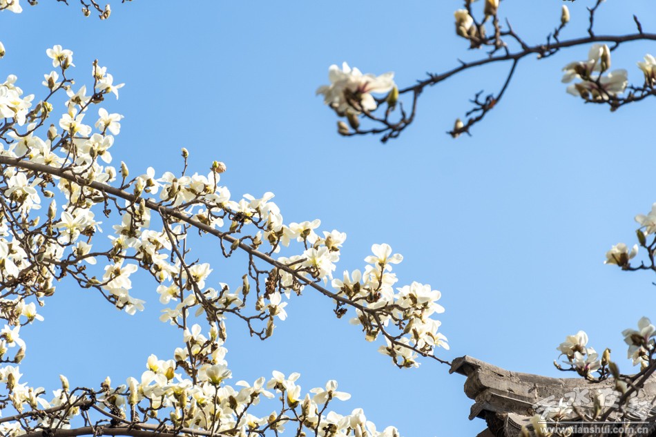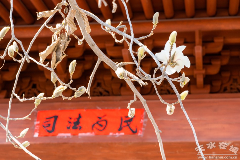 2月23日,位于天水市秦州區(qū)自由路,被稱為網(wǎng)紅街“玉蘭古巷”的玉蘭,相繼悄然綻放,比往年開的更早一些。在藍色天幕、黛瓦白墻、紅色串燈的映襯下,近百株或含苞或怒放的玉蘭花,給這座古城帶來了春的氣息。
