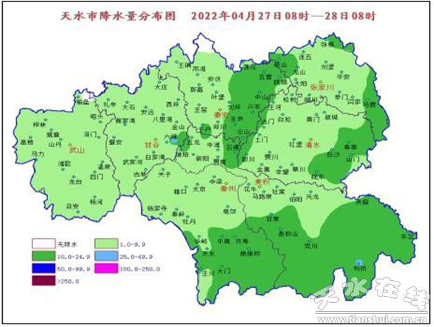04月27日08時(shí)至28日08時(shí),各地降水情況統(tǒng)計(jì)如下: