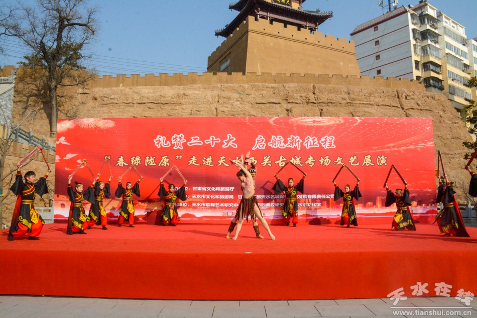 1月9日,由甘肅省文化和旅游廳主辦,天水市文化和旅游局、甘肅公航旅天水名城保護投資發(fā)展有限責(zé)任公司承辦的禮贊二十大 啟航新征程“春綠隴原”走進天水西關(guān)古城專場文藝展演活動在西關(guān)古城隆重舉行。副市長劉國軍致辭,省文旅廳藝術(shù)處二級調(diào)研員陳錦出席活動。