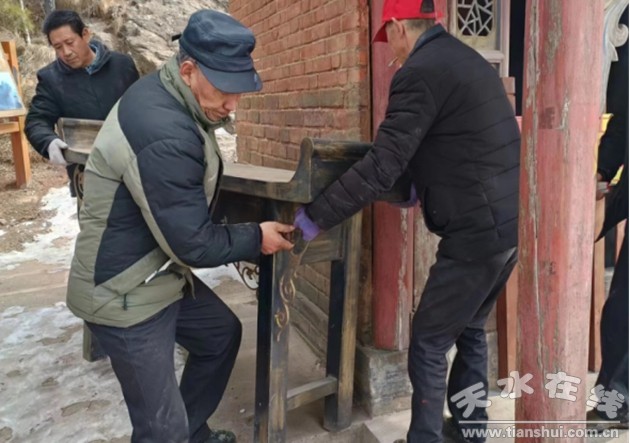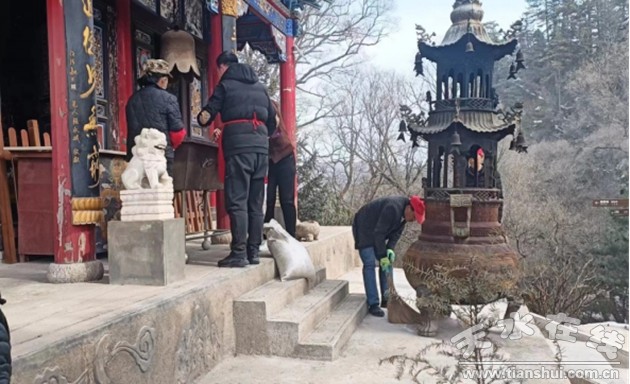天水石門(mén)景區(qū)服務(wù)中心組織人員清理殿宇周邊雜物