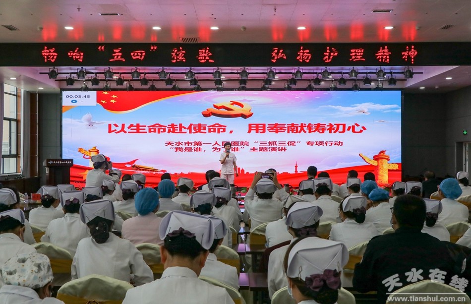 在第74個五四青年節(jié)、第112個“5.12”國際護士節(jié)來臨之際,圍繞“三抓三促”行動的深入開展,天水市第一人民醫(yī)院黨委高度重視,于5月4日開展“我是誰,為了誰”主題演講比賽。醫(yī)院領(lǐng)導(dǎo)、職能和臨床科室主任及醫(yī)生、護士代表150余人參加活動。