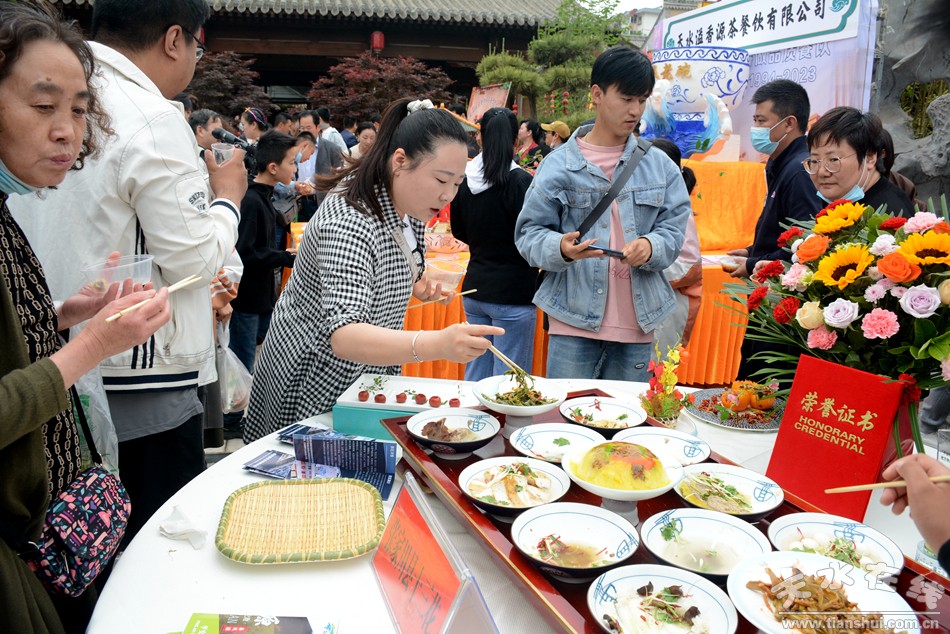 活動現(xiàn)場,60多家餐飲企業(yè)、50多家文創(chuàng)產(chǎn)品企業(yè)參展,集中展示了豐富多樣的天水名優(yōu)小吃、各類宴席和農(nóng)產(chǎn)品共300多個品類,讓大家品嘗到獨(dú)具特色的“天水味道”。