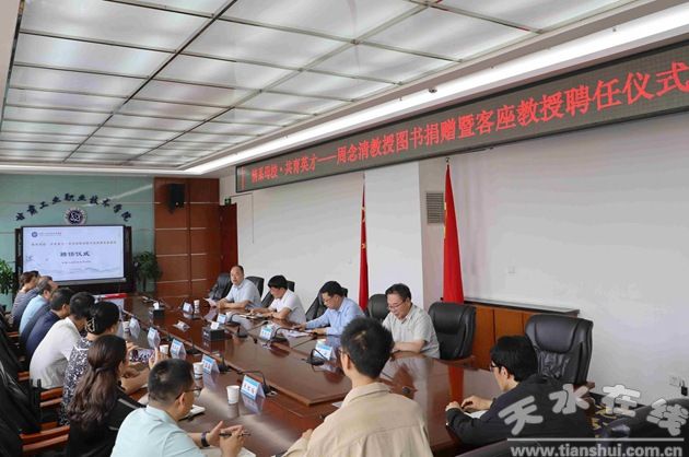 5月16日,甘肅工業(yè)職業(yè)技術(shù)學(xué)院在圖書館4樓報告廳隆重舉行“情系母!す灿⒉拧敝苣钋褰淌趫D書捐贈暨客座教授聘任儀式。黨委副書記文云出席,副院長周曉明主持,人事處、教務(wù)處、科技處等部門負(fù)責(zé)人及校友辦、地質(zhì)學(xué)院教師代表參加。