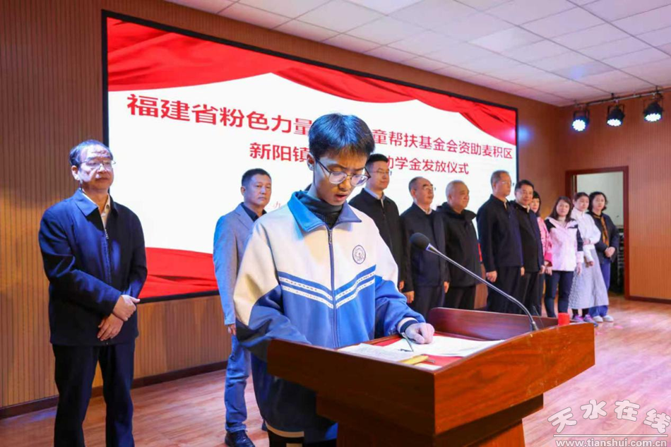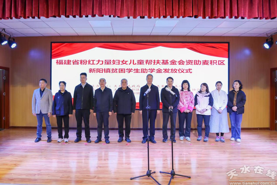 10月20日上午,福建省粉紅力量婦女兒童幫扶基金會(huì)困難學(xué)生幫扶儀式在麥積區(qū)新陽(yáng)鎮(zhèn)中學(xué)禮堂隆重舉行,為25名困難學(xué)生送去5.7萬(wàn)元幫扶資金,以實(shí)際行動(dòng)為困難學(xué)生撐起“希望之傘”。天水市民政局黨組書記、局長(zhǎng)王維云出席儀式并致辭,天水市慈善總會(huì)專職副會(huì)長(zhǎng)曹興強(qiáng),麥積區(qū)人大常委會(huì)黨組成員、副主任陳書田,福建省粉紅力量婦女兒童幫扶基金會(huì)理事長(zhǎng)、云旗集團(tuán)董事長(zhǎng)王東,廈門南洋職業(yè)學(xué)院創(chuàng)辦人、中華兒童文化藝術(shù)促進(jìn)會(huì)公益工作委員會(huì)常務(wù)副會(huì)長(zhǎng)魯加升,陜西省教育基金會(huì)副理事長(zhǎng)孫衛(wèi)國(guó)等領(lǐng)導(dǎo)嘉賓,以及受助學(xué)生、家長(zhǎng)代表共150余人參加發(fā)放儀式。
