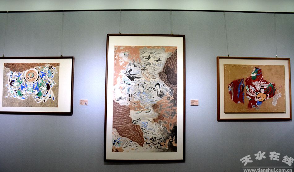 展覽由千年微笑、飛天神韻、時(shí)光留印、指尖白描、一馬當(dāng)先、絕世薄塑六大板塊內(nèi)容組成,包括麥積山石窟不同歷史時(shí)期的石窟壁畫(huà)藝術(shù)精品及臨摹珍品,內(nèi)容豐富、題材多元,全方位呈現(xiàn)了麥積山石窟壁畫(huà)的藝術(shù)脈絡(luò)與美學(xué)精髓。